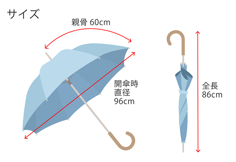 ■サイズ:親骨60cm×8本骨 全長:約86cm 開傘時直径:約96cm 重さ:約360g