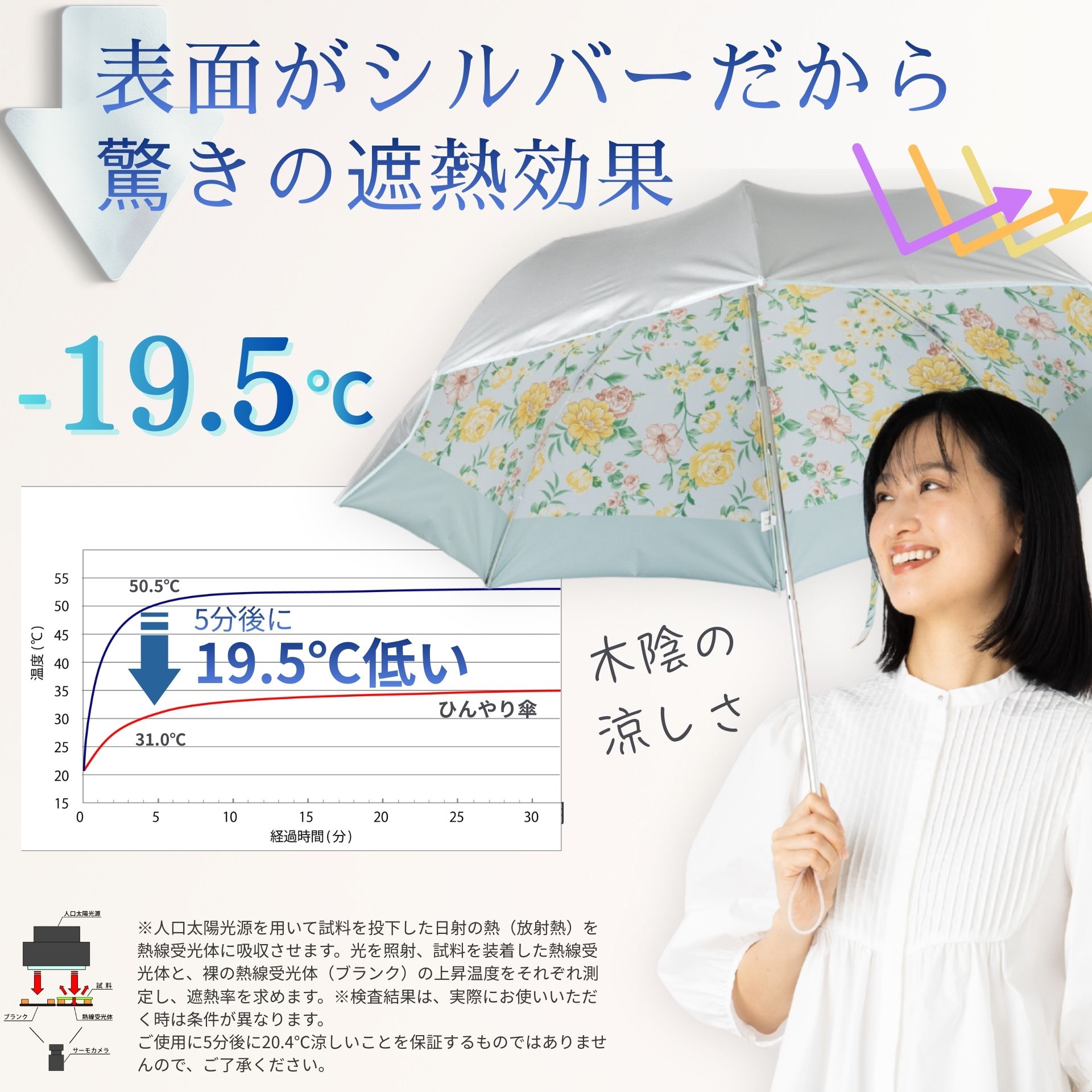 | 製品名 | UVカット 折りたたみ日傘 晴雨兼用軽量折傘 シルバー/花柄 50cm 遮熱<ひんやり傘> |