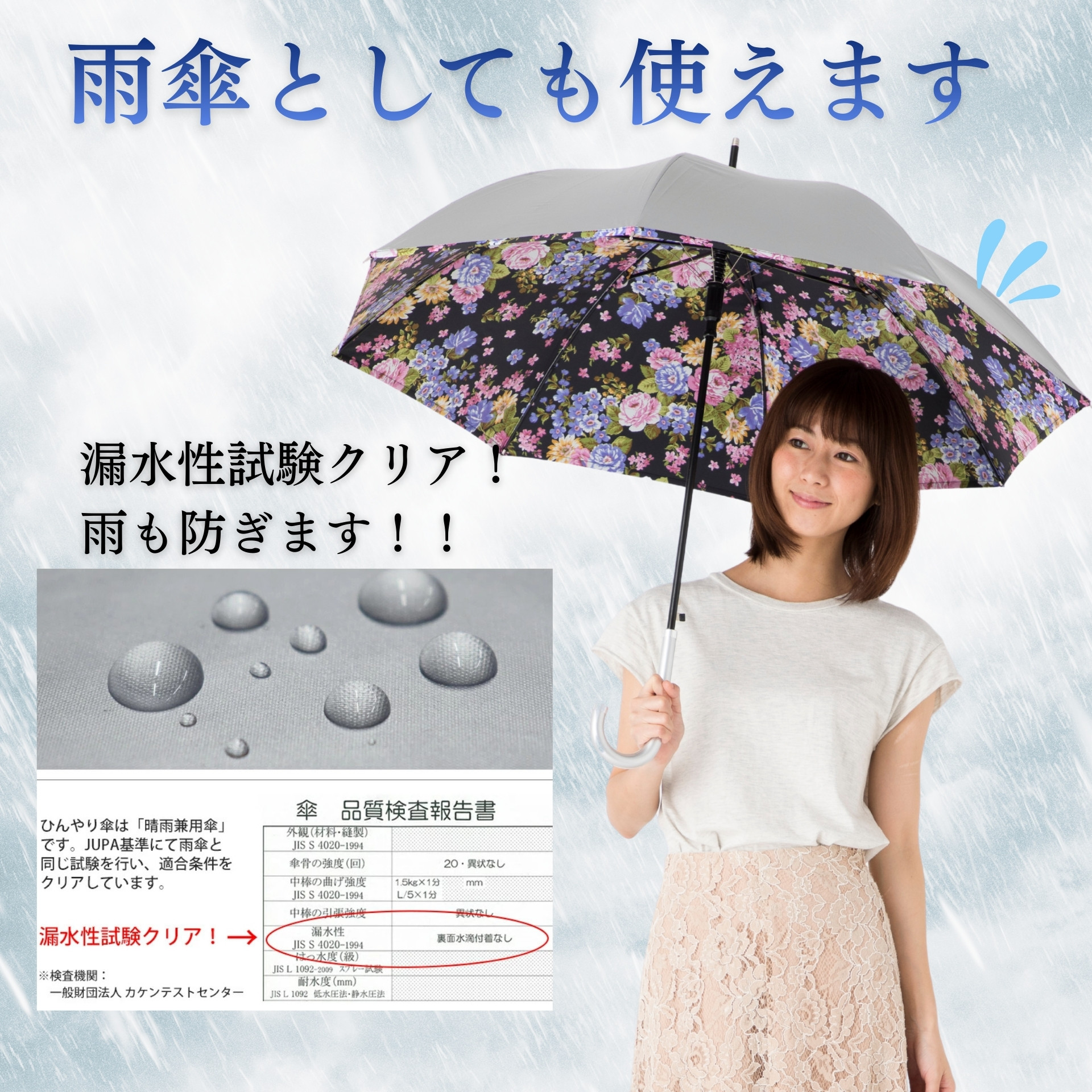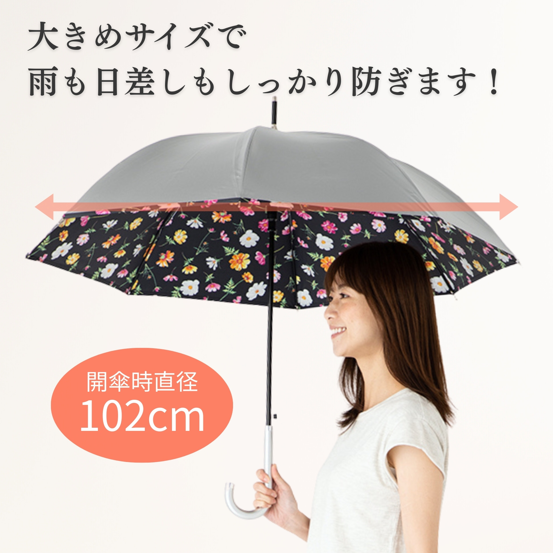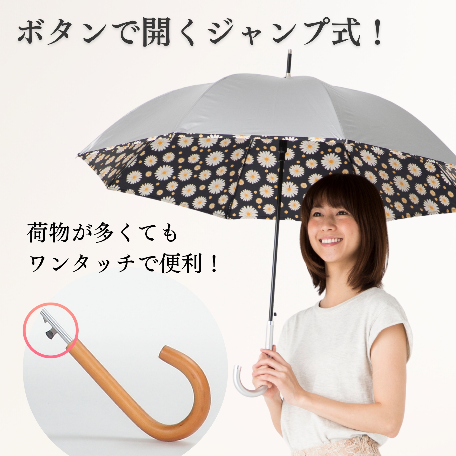 | 製品名 | UV晴雨兼用ジャンプ傘 シルバー/花柄 60cm 長傘 遮熱 ひんやり傘 |