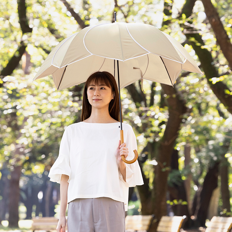 ■素材 生地:ポリエステル100% 親骨:グラスファイバー 中棒:スチール 手元:木