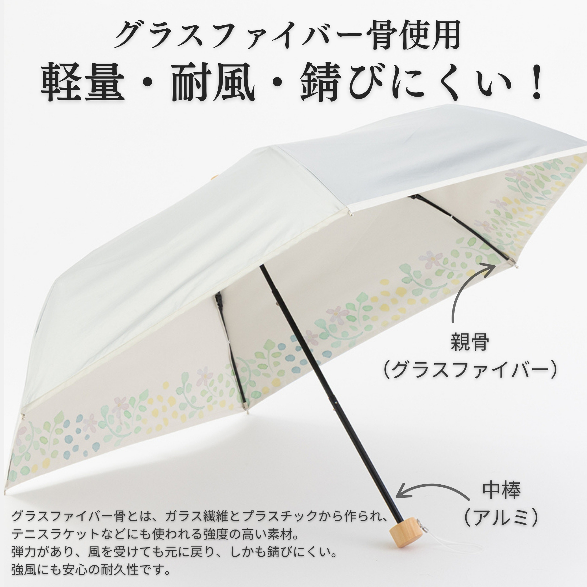 ■素材 生地:ポリエステル100%(ポリウレタンコーティング) 親骨:グラスファイバー アルミニウム 中棒:アルミニウム 手元:木