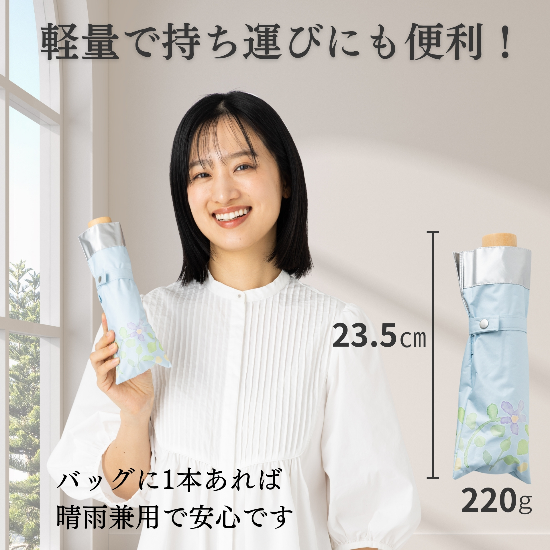 ■サイズ:親骨50cm×6本骨 全長:約52cm 収納時全長:23.5cm 開傘時直径:約87cm 重さ:約220g