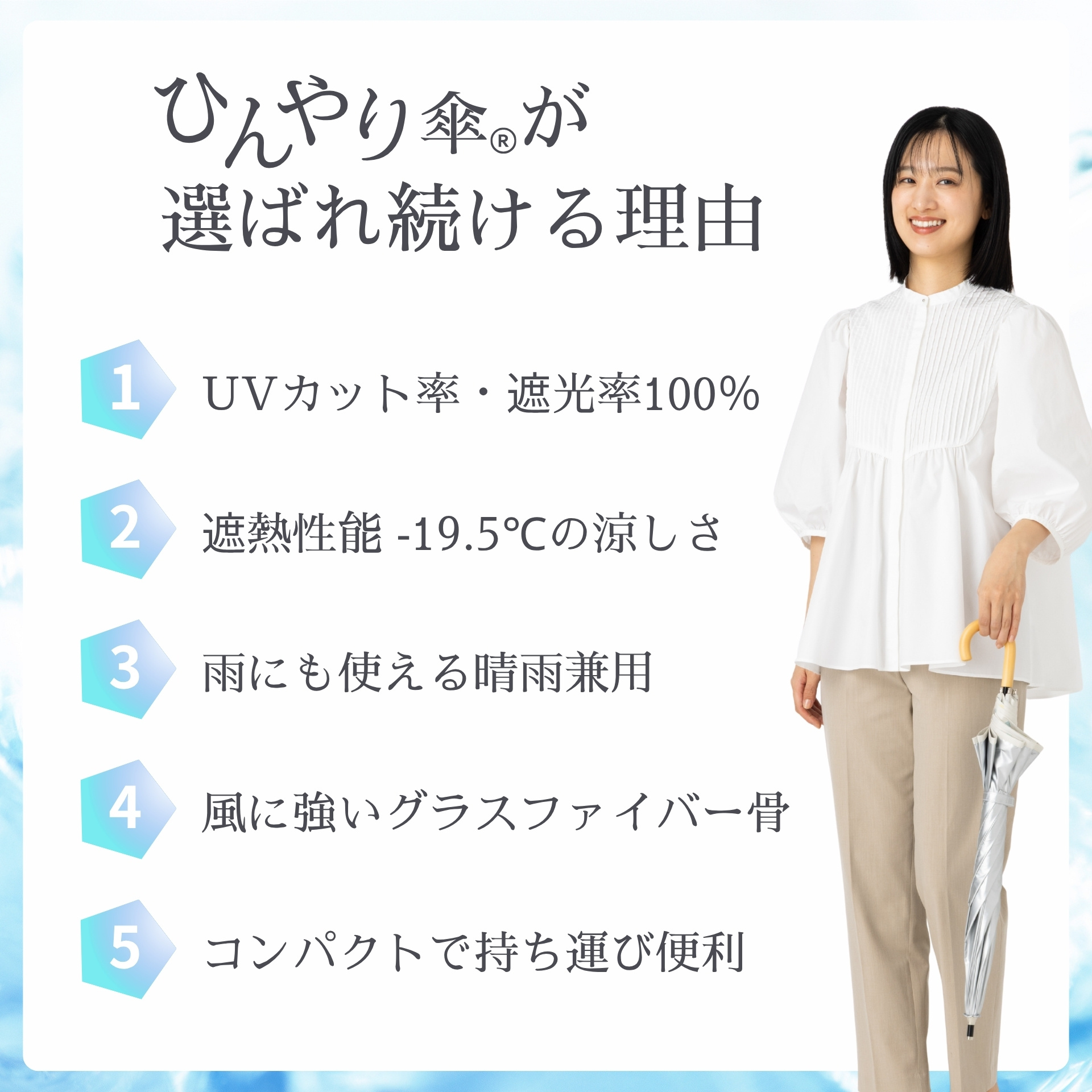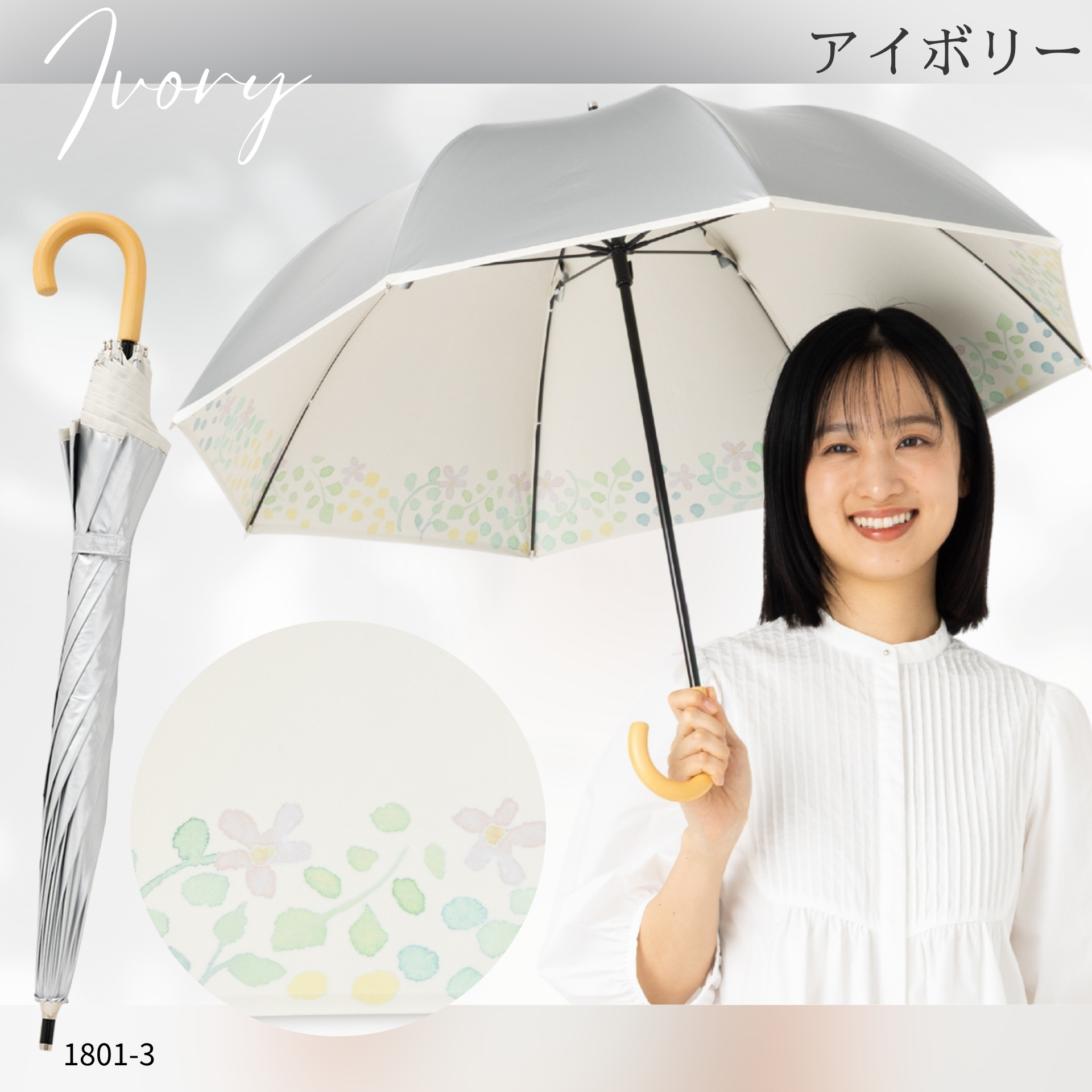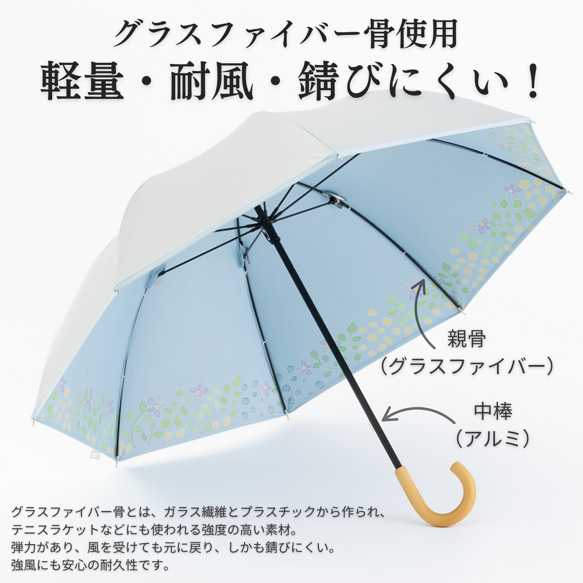 ■素材 生地:ポリエステル100%(ポリウレタンコーティング) 親骨:グラスファイバー 中棒:アルミニウム 手元:木